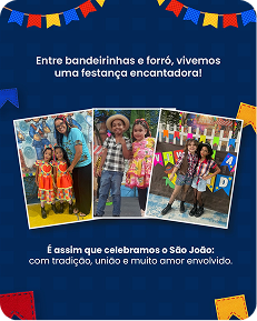 Aqui, cada aluno é visto de forma única. Nosso trabalho integra cuidar, brincar e educar, respeitando as fases do desenvolvimento infantil e estimulando o aprendizado de forma leve, afetiva e consistente.